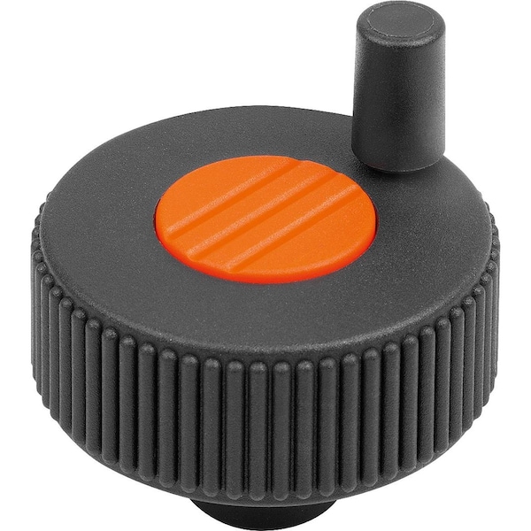 Knurled Knob W Handle Size:2, D1=50, Form:M W.Transv.Bore, Plastic Black, Comp:Steel Cap:Orange