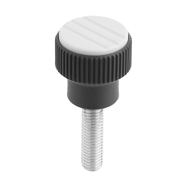 Knurled Knob Size: 1 D=10-32X10 D1=21 H=22 Thermoplastic Black RAL 7021, Components: Steel, Cap: Gray RAL 7035. Note: all KIPP measurements are expressed in millimeters (mm) except for threads and bores on inch products, which are expressed in inches.
