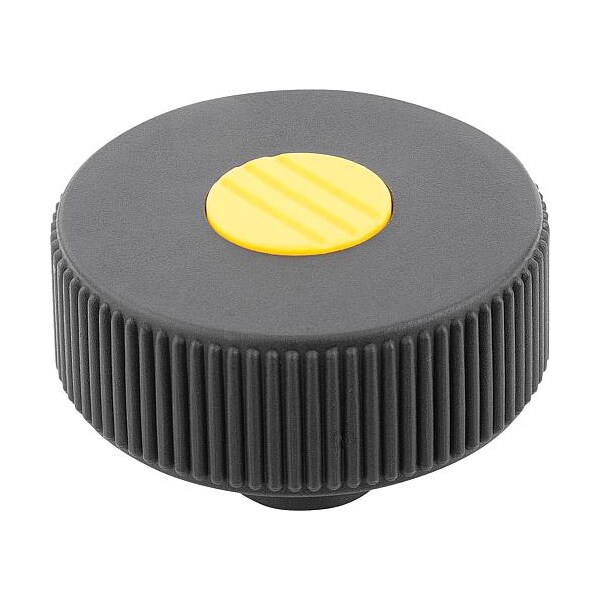 Knurled Knob Size: 3 D1=63 D=3/8-16 H=41, Form: K, Thermoplastic Black RAL 7021, Components: Stainless Steel. Note: all KIPP measurements are expressed in millimeters (mm) except for threads and bores on inch products, which are expressed in inches.