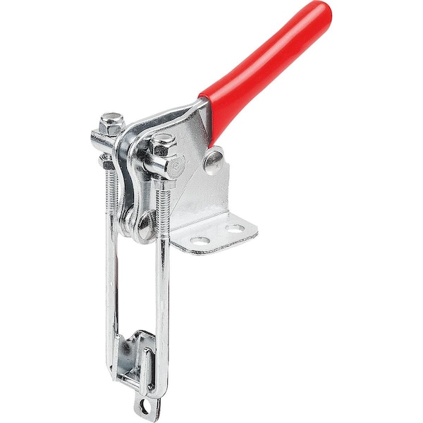 Latch-Action Clamp Vertical W Fixed Jaw, L1=12, 2, Steel Electro Zinc-Plated, Comp:Plastic Comp:Red