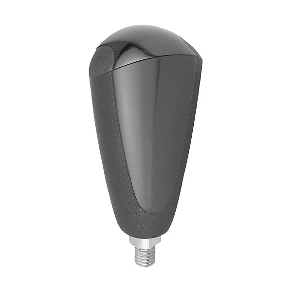 Revolving Handle, Oval, Size: 2, D= M08X10, D1= 41, Thermoset, Gloss Black, Comp. Stainless Steel