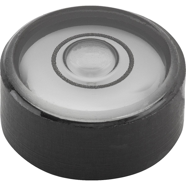 Round Spirit Level Body D1=20 H=8, 5 Aluminum, Black, Comp:Glass, E20' Sensitivity 20'