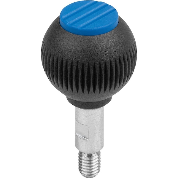 Spherical Knob Revolving Size:2, D1=32 D=M08X12, Plastic Black, Comp:Stainless, Cap:Blue