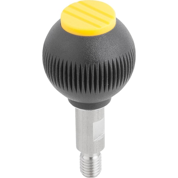 Spherical Knob Revolving Size:4, D1=50 D=M12X20, Plastic Black, Comp:Stainless, Cap:Yellow