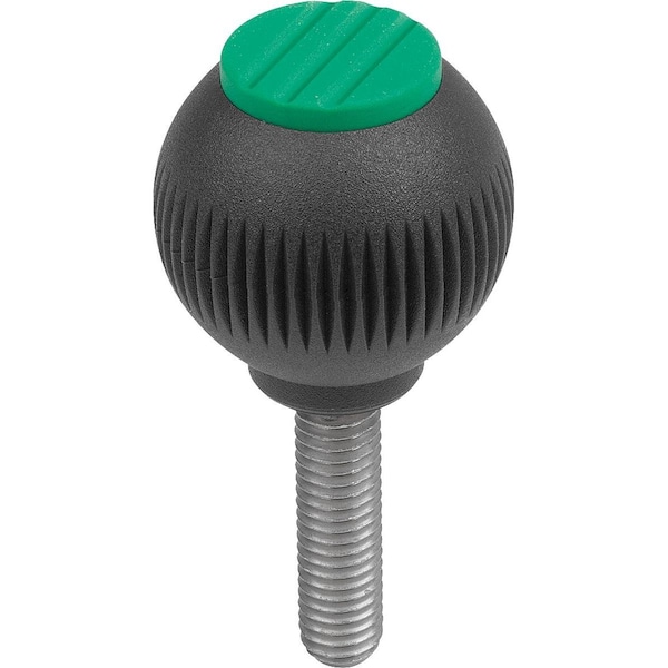 Spherical Knob Size:2, D1=32 D=M08X30, Plastic Black Ral7021, Comp:Stainless, Cap:Green Ral6032