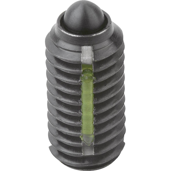 Spring Plunger Intensified Spring Force, Long-Lok D=M12 L=22, Steel, Comp:Pin Steel, Pu=5