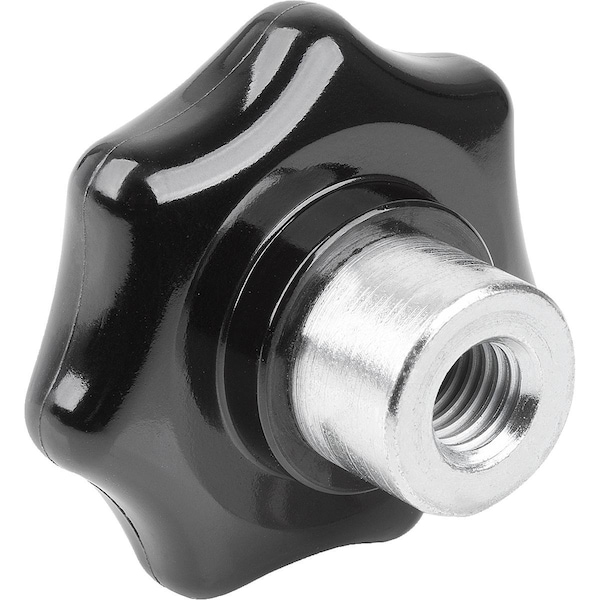 Star Grip With Protruding Bushing D=M10, D1=63 H=40, Form:K, Thermoset Black, Comp:Steel