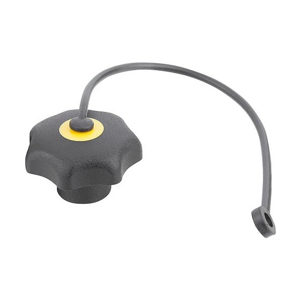 Star Grip Similar To DIN 6336 With Safety Cable D=M08, D1=40 H=25, Form: KS, Tapped Bushing with Cap, Thermoplastic Black, Components: Stainless. Note: all KIPP measurements are expressed in millimeters (mm) except for threads and bores on inch products, which are expressed in inches.