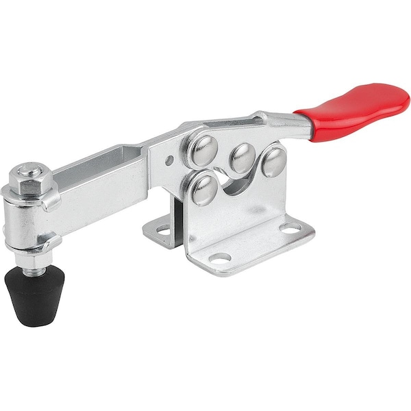 Toggle Clamp Standard L=143, 5, Form:B Steel, Horizontal Foot, Comp:Plastic, Comp:Red, F2=2000