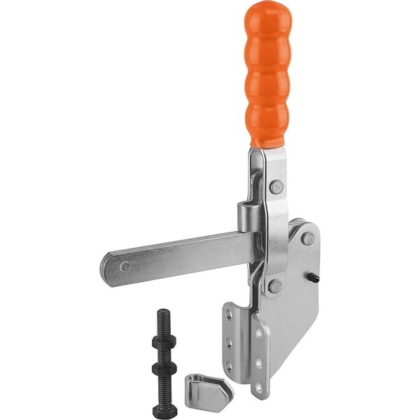Toggle Clamp Standard Steel, Angled Foot, Comp:Plastic, Comp:Orange
