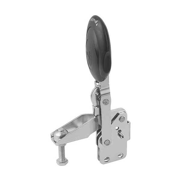 Vertical Toggle Clamps w. Safety Lock, straight foot, adj. spindle, SS