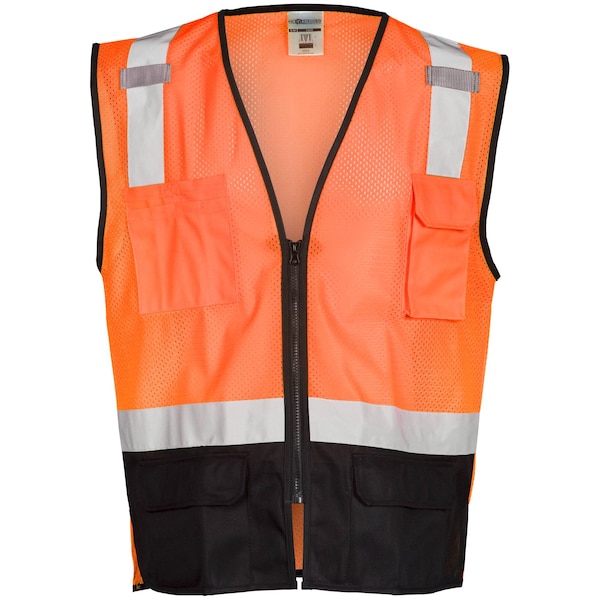 2X-3X, Orange, Class 2, Black Bottom Mesh Vest - Economy
