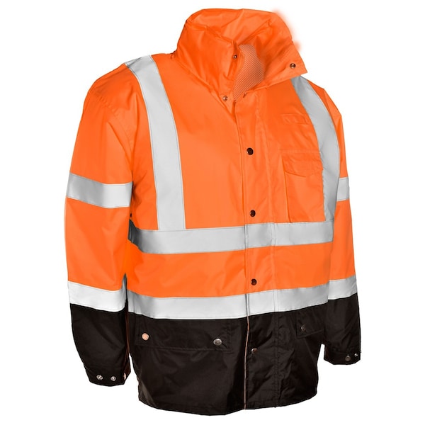 2X-3X, Orange, Class 3, Storm Cover Rainwear Jacket