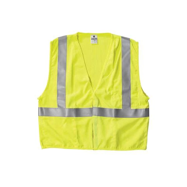 High-Visibility Vest, ANSI Class 2, Vest Size 3XL, Traffic Safety Vest Color Yellow/Green, Fits Chest Size 56 in to 58 in, Gender Men's, Stripe Color Silver, Vest Material Polyester Mesh, Vest Closure Type Hook-and-Loop, ATPV Rating 5.5 cal/sq cm, Hazard Risk Category (HRC) 1, Vest Stripe Color Family Silver, Back Stripe Pattern U, Vest Length 28 in, Number of Pockets (Inside) 3, Number of Pockets (Outside) 0, Number of Pockets with Closure 0