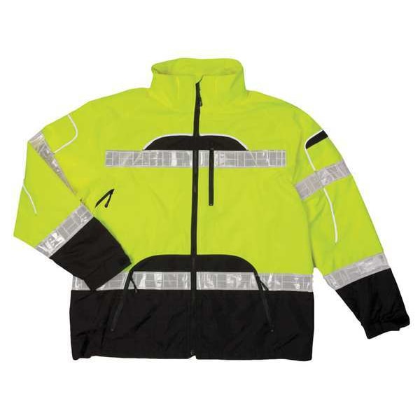 Rain Jacket, Reflective Piping, Polyester, Class 3 R, Black/Yellow, S