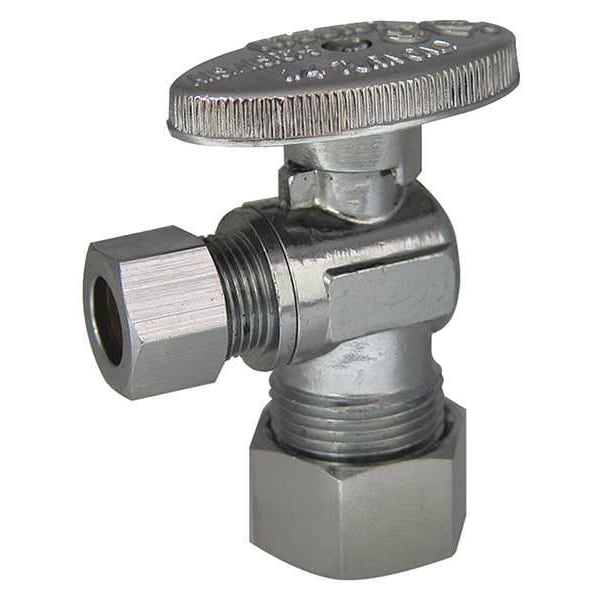 Water Supply Stop, Handle Operation 1/4-Turn, Body Material Brass, Body Finish Chrome-Plated, Connection Size - Side 1 5/8 in, Connection Gender - Side 1 Female, Connection Type - Side 1 Compression, Connection Size - Side 2 3/8 in, Connection Gender - Side 2 Female, Connection Type - Side 2 Compression, Connection Size - Side 3 Not Applicable, Connection Gender - Side 3 Not Applicable, Connection Type - Side 3 Not Applicable, Maximum Pressure - Operating 250 psi