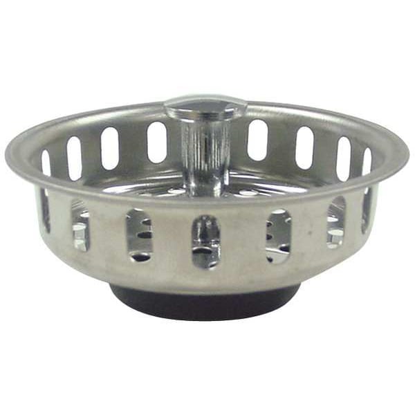 Strainer, Product Type Strainer, Overall Diameter 3 1/4 in, Material Stainless Steel, Finish Chrome, Installation Type Push and Twist, Color Silver, Grate Surface Type Round Holes, Shape Round, Includes Stopper, Load Capacity Not Applicable, ADA Compliant Not ADA Compliant, Overall Height 1 1/2 in, For Use with Drain Type Sink Drain, Drain Style Round, Compatible with Manufacturer Model Number Various, Standards Not Applicable, Compatible with Brand Universal, Gauge 22 ga