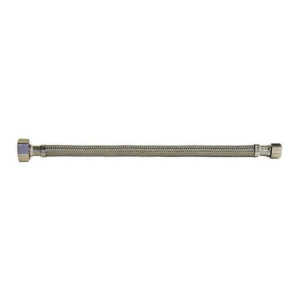 Faucet Connector, Hose Inside Dia. 5/16 in, Hose Length 12 in, Hose Tube Material PVC, Hose Cover Material Stainless Steel, Max. Working Pressure @ 70 F 250 psi, Temp. Range 40 Degrees to 180 Degrees F, Standards IAPMO, NSF, Hose Fitting A Material Brass, Hose Fitting B Material Brass, Hose Fitting A Type F Compression, Hose Fitting B Type FIP, Hose Fitting A Size 3/8 in, Hose Fitting B Size 1/2 in, Hose Configuration Bulk Hose, For Use With Faucet, Application Lavatory and Kitchen Faucets