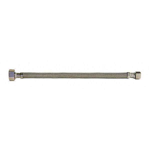 Faucet Connector, Hose Inside Dia. 5/16 in, Hose Length 20 in, Hose Tube Material PVC, Hose Cover Material Stainless Steel, Max. Working Pressure @ 70 F 250 psi, Temp. Range 40 Degrees to 180 Degrees F, Standards IAPMO, NSF, Hose Fitting A Material Brass, Hose Fitting B Material Brass, Hose Fitting A Type F Compression, Hose Fitting B Type FIP, Hose Fitting A Size 3/8 in, Hose Fitting B Size 1/2 in, Hose Configuration Bulk Hose, For Use With Faucet, Application Lavatory and Kitchen Faucets