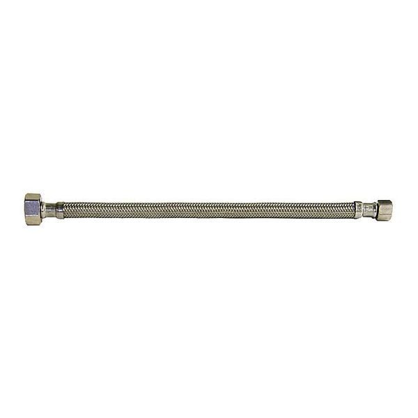 Faucet Connector, Hose Inside Dia. 5/16 in, Hose Length 36 in, Hose Tube Material PVC, Hose Cover Material Stainless Steel, Max. Working Pressure @ 70 F 250 psi, Temp. Range 40 Degrees to 180 Degrees F, Standards IAPMO, NSF, Hose Fitting A Material Brass, Hose Fitting B Material Brass, Hose Fitting A Type F Compression, Hose Fitting B Type FIP, Hose Fitting A Size 3/8 in, Hose Fitting B Size 1/2 in, Hose Configuration Bulk Hose, For Use With Faucet, Application Lavatory and Kitchen Faucets