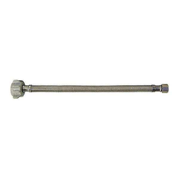 Toilet Connector, Hose Inside Dia. 5/16 in, Hose Length 12 in, Hose Tube Material PVC, Hose Cover Material Stainless Steel, Max. Working Pressure @ 70 F 250 psi, Temp. Range 40 Degrees to 180 Degrees F, Standards IAPMO, NSF, Hose Fitting A Material Brass, Hose Fitting B Material Plastic, Hose Fitting A Type F Compression, Hose Fitting B Type FIP, Hose Fitting A Size 3/8 in, Hose Fitting B Size 7/8 in, Hose Configuration Bulk Hose, For Use With Toilet, Application Toilet