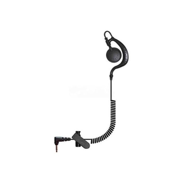 Agent listen-only earpiece - short cord listen-only earpiece with short cord for collar-length reach. Sturdy "c" adjustable earloop with clear-audio speaker that rests on the ear. 3.5mm connector. Swivels for left or right ear.