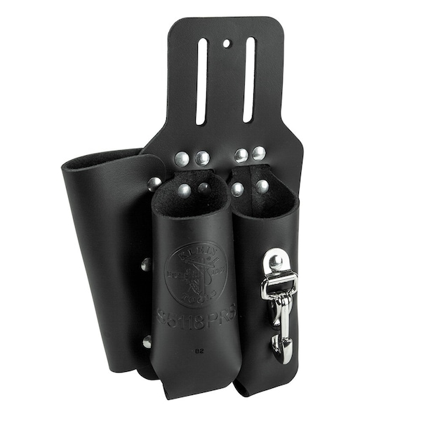 Tool Pouch, Attachment Type Belt Slot, Belt Width 2 in, Closure Type Open Top, Color Black, Compatible with Product Type Folding Rules, Screwdrivers, Side-Cutting Plier, Features Lightweight Option for Carrying the Tools You Need for the Particular Job your Doing Today, For Maximum Belt Width 2 in, For Maximum Tool Length 9 in, Includes Two-Way Knife Snap, Material Leather, Number of Inside Pockets 0, Number of Outside Pockets 3, Number of Pockets 3, Overall Depth 6 3/4 in, Overall Height 10 in