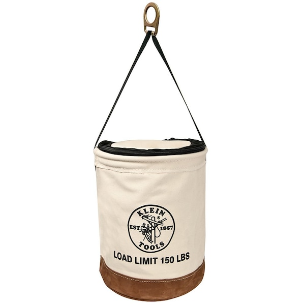 Keep your tools safe and protected with Klein's Heavy Duty Top Closing Tool Buckets. The top zips closed to prevent falling objects. Load rated for up 150-pound (68 kg), this roomy bucket holds all the necessary tools required to get the job done. Heavy-duty No. 1 canvas body with leather reinforced bottom withstands the harshest job sites.