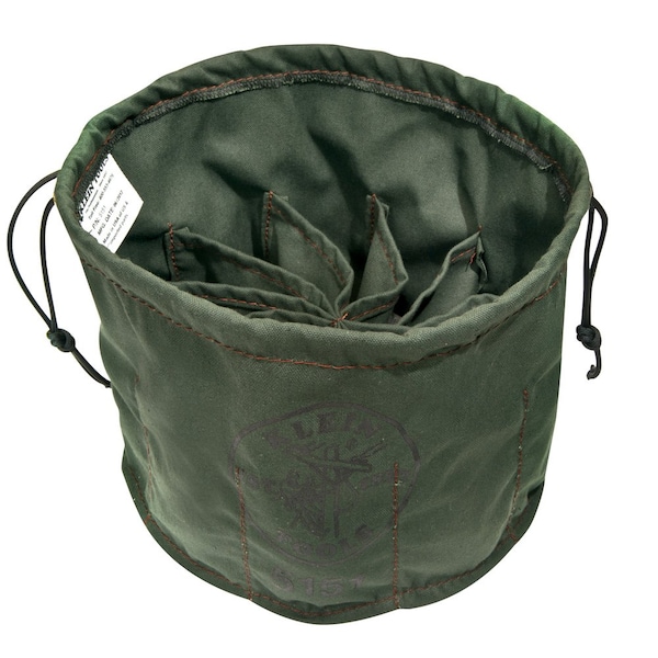 Bucket Bag, Bag Material Canvas, Bag Type Straight Wall, Body Color Olive, Bottom Diameter 11 in, Closure Type Drawstring, Features Olive canvas for durability, Attachment Type Not Applicable, Includes -, Material Weight 0.4 lb, Number of Inside Pockets 10, Number of Outside Pockets 0, Number of Pockets 10, Overall Height 6 in, Overall Width 11 in, Reinforced Bottom Reincforced Bottom Not Included, Shape Round, Top Diameter 11 in, Includes Hang Strap Hang Strap Not Included