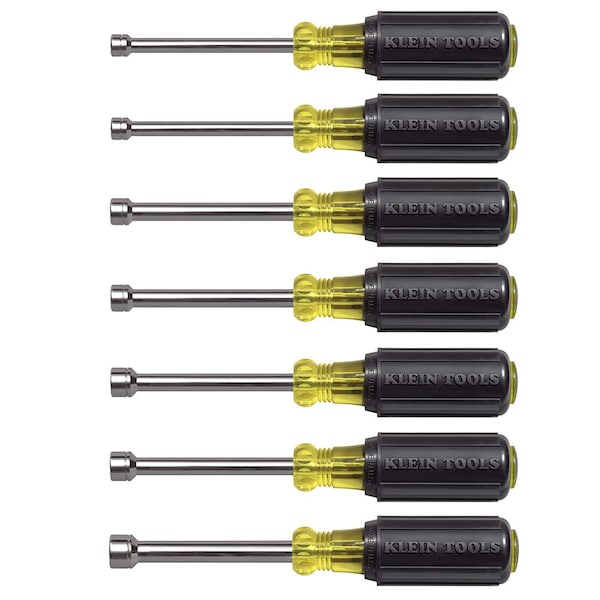 Nut Driver Set, Tip Size 10 mm, 5 mm, 5.5 mm, 6 mm, 7 mm, 8 mm, 9 mm, Bolt Clearance 5.5 mm, 6.5 mm, 7.25 mm, Shank Length 3 in, Cushion, Metric, Hollow Shank, Fastener Holding No, For Fastener Size 5 mm, 5 1/2 mm, 6 mm, 7 mm, 8 mm, 9 mm, 10 mm, ESD Safe No, Insulated No, Magnetized Tip No, Non-Magnetic Yes