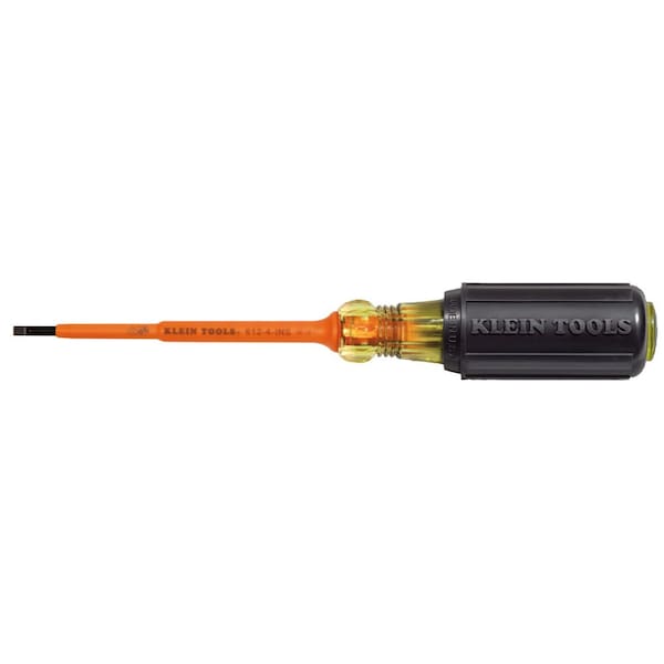 Insulated Slotted Screwdriver, Tip Size 1/8 in, Slotted, Cushion, Overall Length 7 3/4 in, ESD Safe No, Non-Sparking No, Non-Magnetic No, Insulated Yes, Corrosion Resistant Yes, No, Tip Finish Black Oxide, Shank Coating Insulated