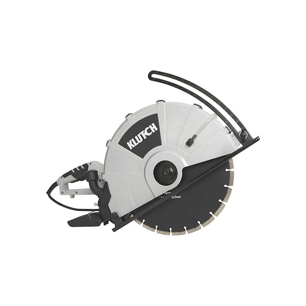 The Klutch electric concrete cutter cuts stone, brick, tile, and more to a depth of up to 5 in. It offers a maximum blade speed of 4300 RPM and features an ergonomic handle, 14-inch. blade, and adjustment wrench.