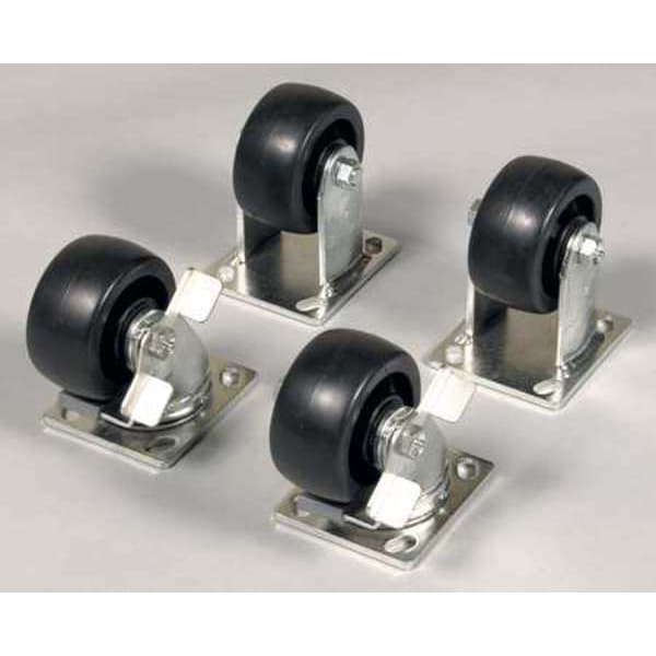 Caster Set, 2 in. W, Steel/Rubber, Black