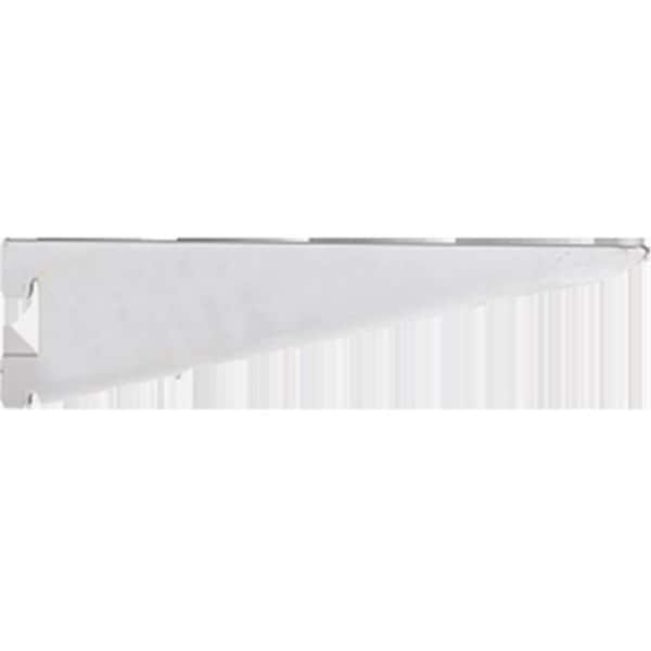 Features These brackets are designed to be a robust, yet visually appealing alternative to other heavy-duty adjustable shelving systems They are adjustable in 1-1/4 in. Vertical increments & feature two mounting holes in the bottom of the bracket to allow shelves to be fastened to the brackets utilizing screws Color - White Pack of 10 Size - 12-1/2 in. Each weight - 0.54 lbs.