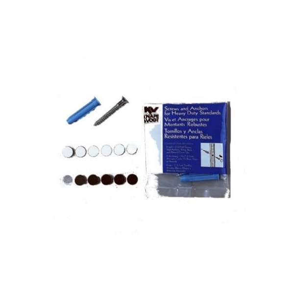 6 Pack, 12 x 2 Flat Head Wood Screws Wall Anchors For Securing 82 Double Slotted Standards, Includes White, Black Almond Cover Tabs