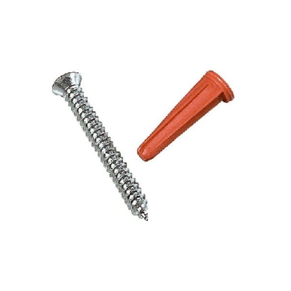 6 Pack, 6 Phillips Head, Zinc Screws Plastic Anchors For Shelf Standards