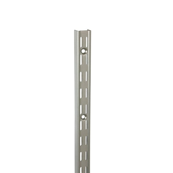 This 63 inch Knape and Vogt heavy-duty standard features a double slot design with 1.25 inch vertical slot adjustability. It features strength enhancing ribs, countersunk screw holes and center aligned slots and screws with precision cut lengths. Made of heavy-duty steel construction with a durable titanium powder coat finish.