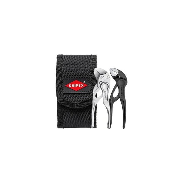 Always to hand, always useful: Pliers Wrench XS and KNIPEX Cobra XS in a practical belt pouchTool bag made from durable polyester fabric, with hook-and-loop fastener and belt loopWith pliers wrench XS: 100 mm tool length, parallel jaw opening gently grips up to 21 mm width across flatsWith KNIPEX Cobra XS: 100 mm tool length, grips round workpieces up to 28 mm, with self-locking effectDimensions W x H x D: 30 x 110 x 45 mm