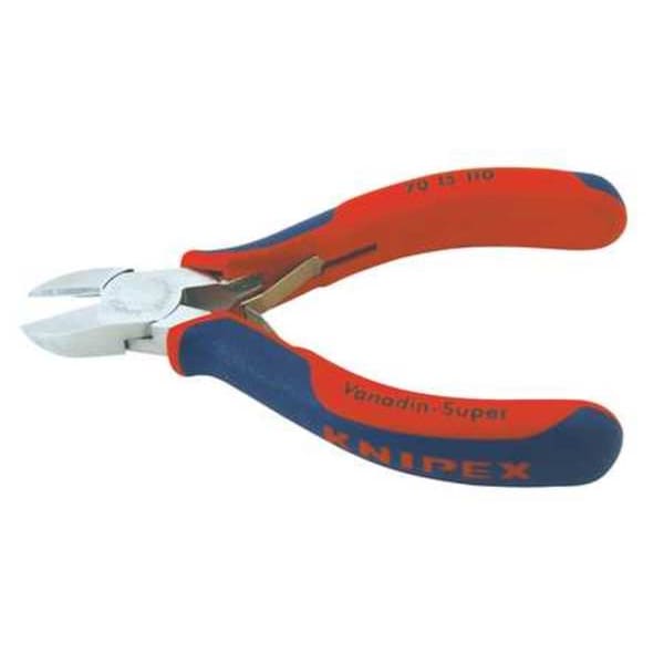 This KNIPEX 70 15 110 Diagonal Cutting Plier is the perfect tool for cutting and gripping wire. With a multi-component grip, this diagonal cutting plier provides a comfortable and secure hold. The vanadium steel construction makes it durable and long lasting. This diagonal cutting plier has an overall length of 4 1/4 in., jaw length of 5/8 in., jaw width of 9/16 in., nose type of half round, bevel cut, handle color of red and a material type of vanadium steel. When you need to cut or grip wire, this KNIPEX Diagonal Cutting Plier will get the job done right.