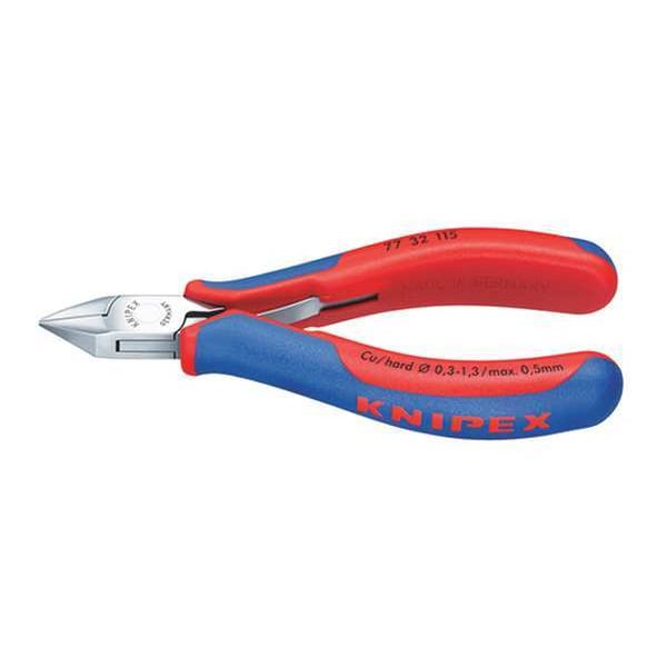 If you need to cut wire or small bolts, the KNIPEX 77 32 115 Diagonal Cutting Plier is the tool for you. It has a pointed head and offers zero-backlash box joint. The multi-component grip ensures that this diagonal cutting plier will not slip out of your hand while in use. You can be sure that this cutting plier will provide years of service because it is made from tool steel. This straight nose diagonal cutting plier has a length of 4 3/4 in., a 1/2" jaw length, and 5/8" jaw width. The KNIPEX 77 32 115 Diagonal Cutting Plier is a great addition to any workshop.
