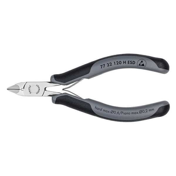 Diagonal Cutting Plier, Plier Type Precision Diagonal Cutting Pliers, Cut Profile Standard, ESD-Safe Yes, Insulated No, Non-Sparking No, Head Offset Angle 0 Degrees , Nose Shape Pointed, Overall Length 4 3/4 in, Jaw Length 1/2 in, Jaw Width 1/2 in, Jaw Opening Type Spring Return, Maximum Wire Cutting Diameter 0.063 in, Tether Ready No, Additional Tool Functions Wire Cutter, Blade Material Carbide, Cutter Length 1/2 in