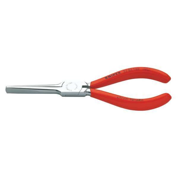 This KNIPEX 6-1/4" Duckbill Plier is the perfect tool for gripping and bending metal. It has smooth, non-slip jaws that will not mar the surface of your work piece. The duckbill pliers have a jaw width of 19/64 in., which makes it easy to hold objects securely. With 9 mm wide jaws at the tip and tapering to 1.5 mm thickness, this plier provides excellent leverage on flat or round material. Made of chrome vanadium electric steel, this 6-1/4 in long plier has a red plastic coated handle for added comfort and grip. The KNIPEX 6-1/4" Duckbill Pliers are versatile tools you can rely on when working with metal objects.