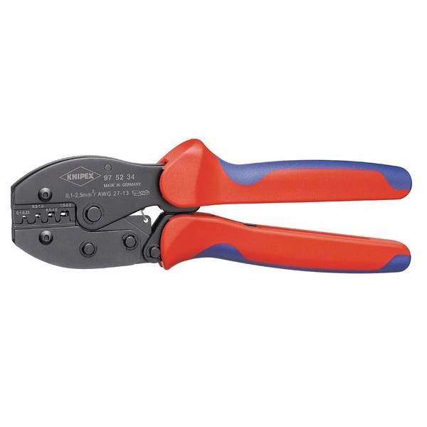 Crimper, Crimper Style Controlled-Cycle - Crimping Pliers, Crimping Capacity 13 AWG, 15 AWG, 17 AWG, 19 AWG, 21 AWG, 23 AWG, 25 AWG, 27 AWG, Compatible Connector Type Non-Insulated Open Barrel Connectors, Compatible Terminal Type Uninsulated, Minimum Compatible Wire Size 27 AWG, Maximum Compatible Wire Size 13 AWG, Maximum Crimping Force Not Rated, Tool Length 8 5/8 in, Includes Wire Cutter No, Includes Wire Stripper No, Insulated No, Adjustability Manual, Body Material Steel