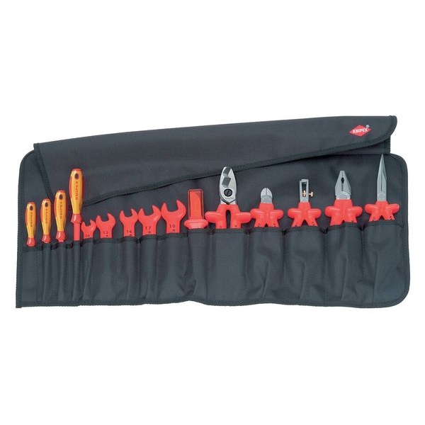 Insulated Tool Kit, Tool Storage Type Tool Roll, Measurement Type SAE, Drive Size Sockets Not Included, Number of Pieces 15, Pliers Included Snipe Nose Side Cutting Pliers, Sockets, Drive Tools, and Accessories Included None, Wrenches Included (1) Open End Wrench, Cutting Tools Included Knife, Plumbing Tools Included None, Measuring and Testing Tools Included None, Miscellaneous Tools Included None, Number of Pliers 2, Number of Wrenches 5, Abrasives and Finishing Tools Included None