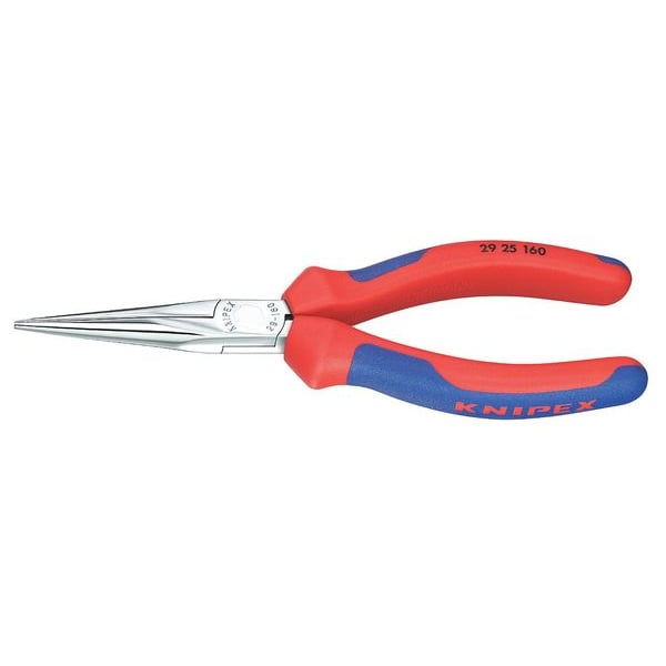 Needle Nose Plier, Jaw Bend 0 Degrees , Overall Length 6 1/4 in, Jaw Length 2 1/8 in, Tip Width 5/64 in, Voltage Rating Not Rated, Handle Color Blue/Red