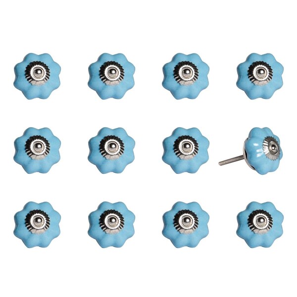 Vintage Handpainted Flower Ceramic Knob Set, Light Blue, 12PK