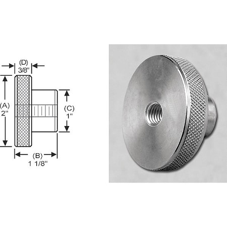 Knrl Knob Stud, 1/2-20", 2.5"dia., 1.75"Std, Diameter: 2-1/2"