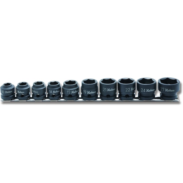 Socket set 10-27mm 6 Point 300mm Thin walled 10 pieces 1/2 Sq. Drive, RS14401MS/10