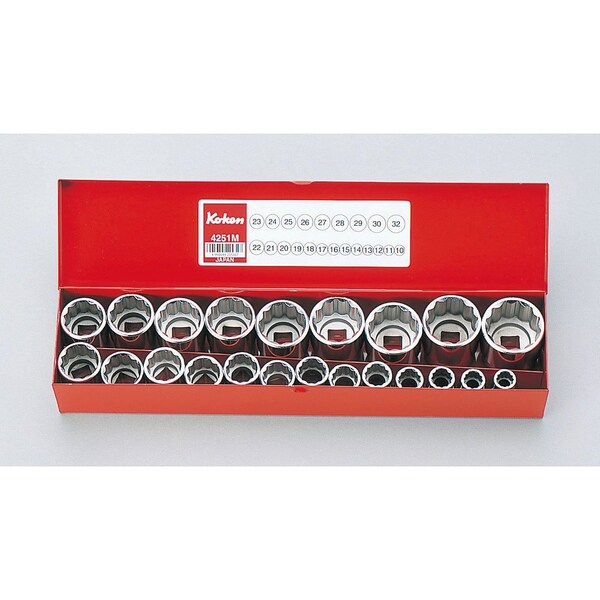 Socket set 12 Point 18 pieces 1/2 Sq. Drive, 4251A