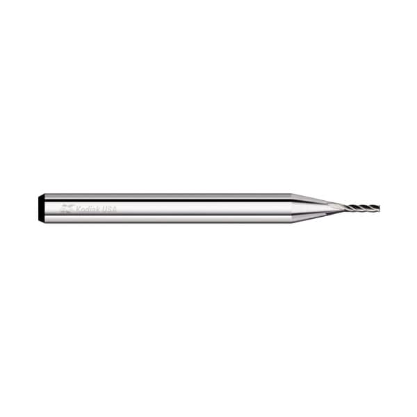 These Kodiak Cutting Tools® micro four flute carbide end milling cutters feature a 30 helix angle and are center cutting for plunging, slotting and profiling. As with all of our solid carbide tools, these end mills are manufactured using state-of-the-art machinery, manufacturing processes and inspection techniques, making them the preferred choice of carbide endmills for machinists wanting to produce high quality parts with maximum tool life. These regular length miniature end mills feature a length of cut three times the cutting diameter of the tool.